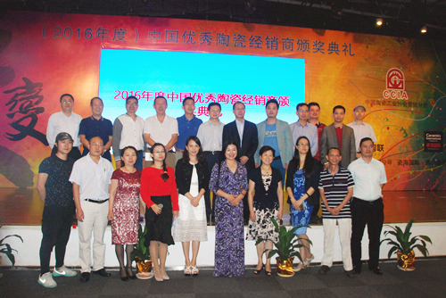 最后,參加本次頒獎典禮的主要嘉賓和優(yōu)秀經(jīng)銷商代表共同合影留念,2016年度中國優(yōu)秀陶瓷經(jīng)銷商頒獎典禮完美落幕。